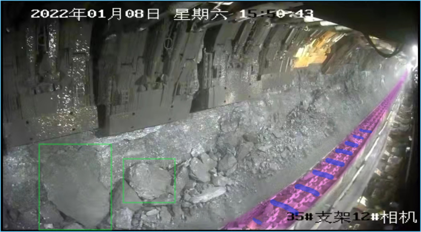 ● 刮板输送机大块煤识别,可自主设定大块尺寸,对刮板输送机内的大块煤进行智能识别