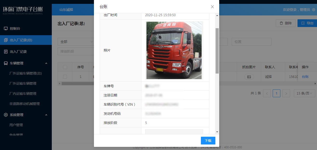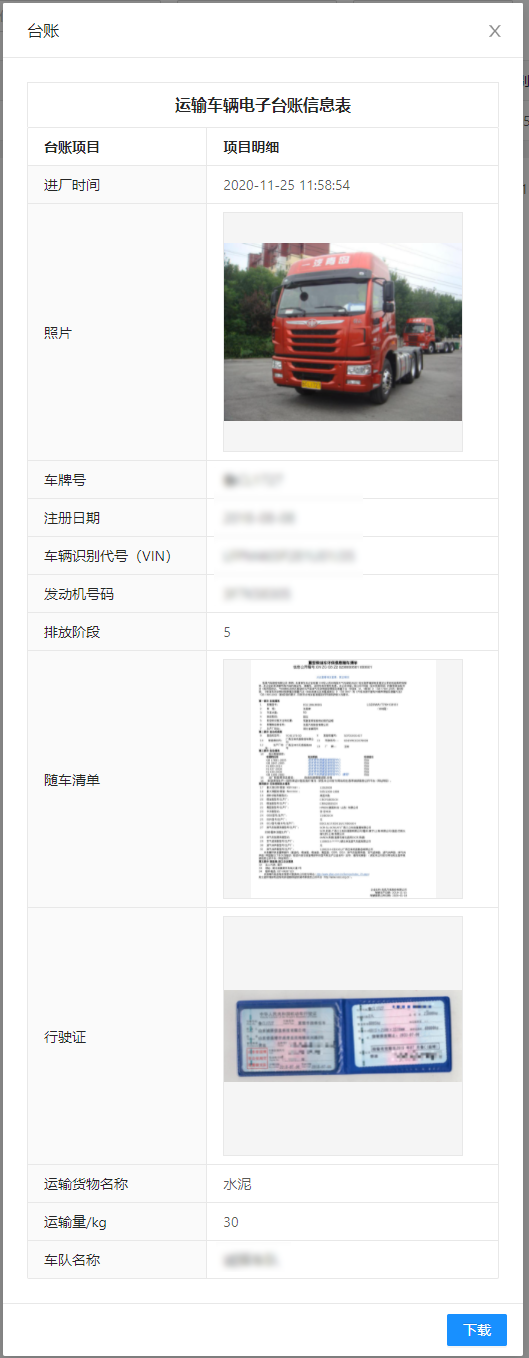 自动储存车辆照片(车牌号)、环保信息清单,行驶证,建立车辆台账,一车一档。