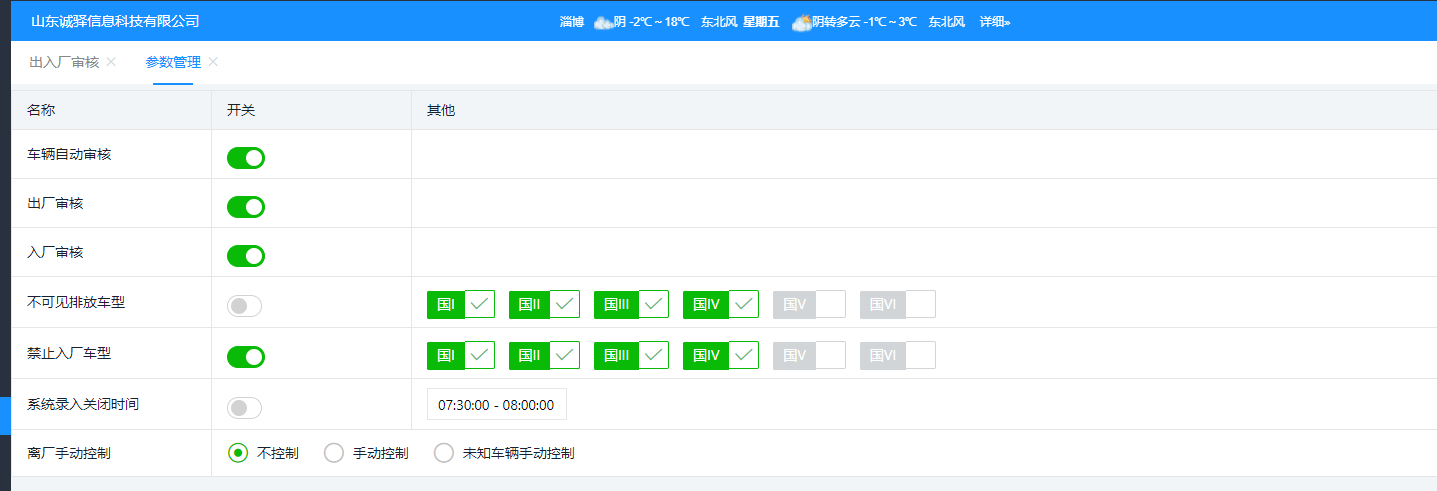排放阶段禁行参数设置