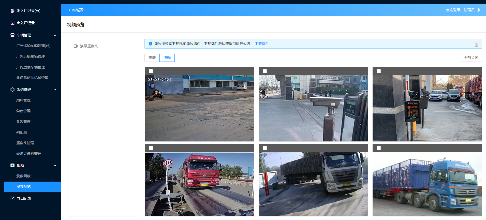 视频监控、出入厂车辆照片抓拍,实施监控进出厂情况,视频可保存回放。
