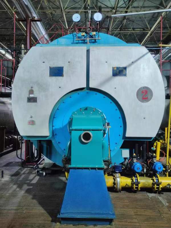 在锅炉的尾部烟气出口处加装烟气再循环管道,通过烟气调节阀的挡板开度,来控制进入鼓风机吸风口的烟气量,且通过混风箱体上的风门挡板控制空气的吸入量,从而调节空气与烟气配比并混合后进入燃烧头与燃气一起参与燃烧,保证燃烧的稳定性,从而达到降低氮氧化物的目的。