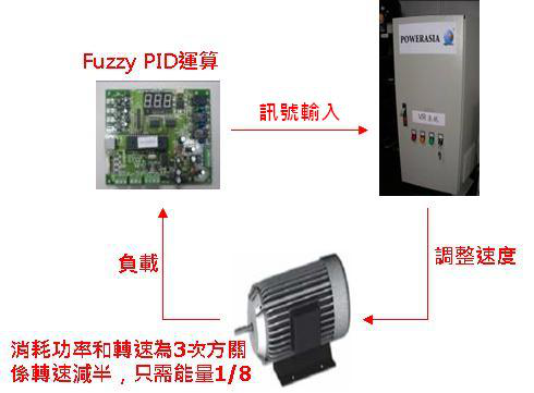 ·传感器将现场讯号传回IEEOS VR 系统,将侦测结果做Fuzzy PID演算后,再由变频器改变输出频率,进而达到节能目的