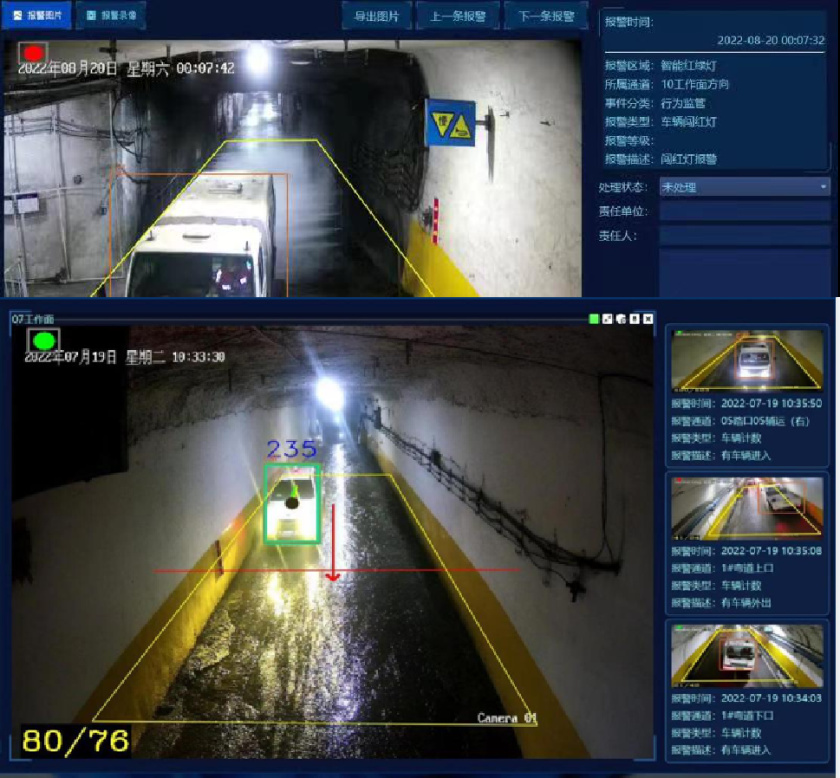 ● 应识别通过路口车辆类型(重载、载人、上坡车辆),根据重载、载人、上坡车辆优先通过等规则,通过辅助运输监控系统智能控制路口信号灯